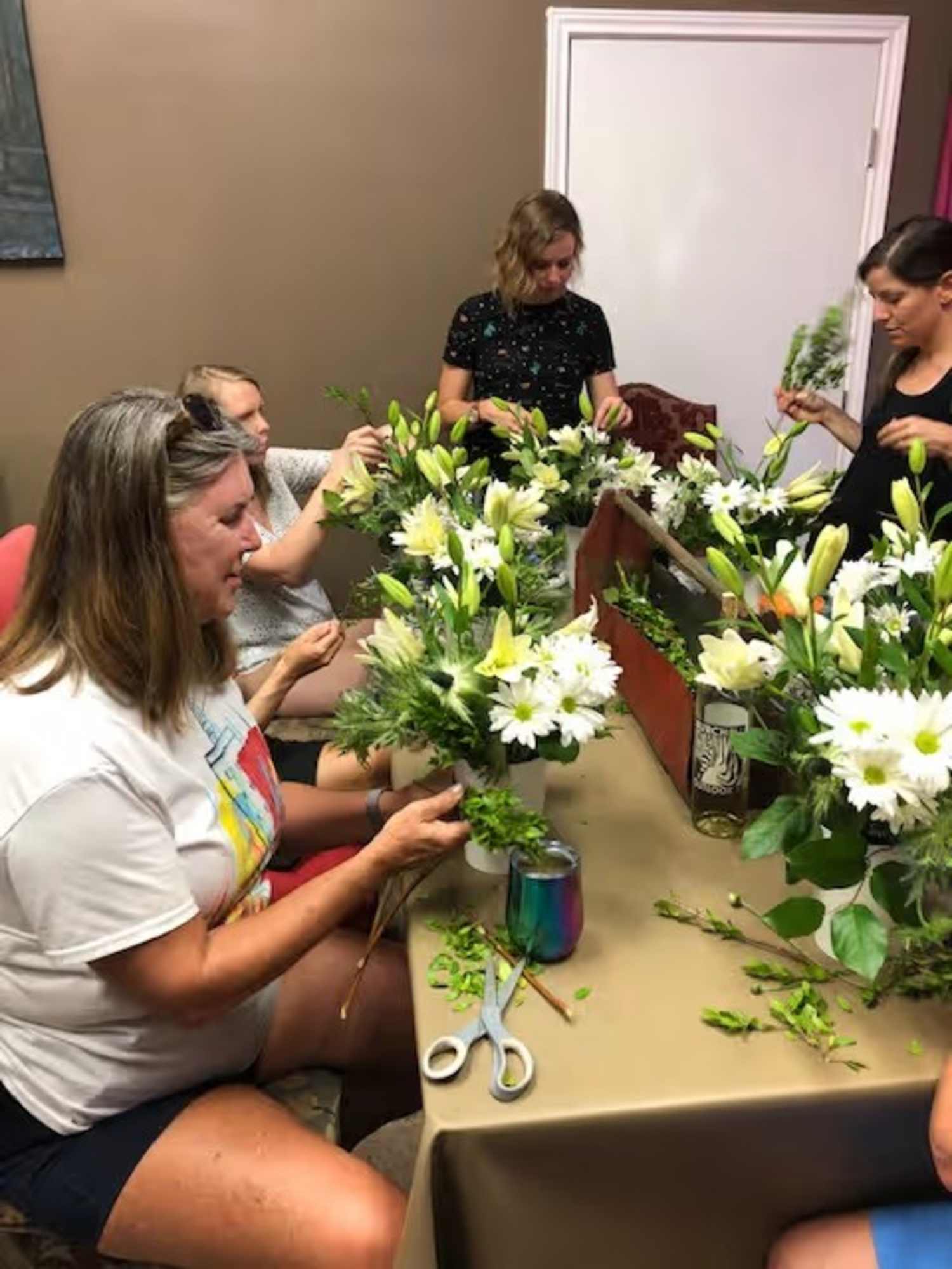 Call to schedule a class for your group of 6-12 people or sign-up to have fun with us at a flower arranging party! We will have an arrangement made which you will copy with our guidance and your flair. Then you take home a beautiful arrangement in a vase to enjoy! Your hosted party is held in a semi-private room where you can bring your drink of choice, which may be alcohol or not, and finger foods. The party will be led by a floral designer and lasts about 2 hours. This is a fun option for all of your party needs.